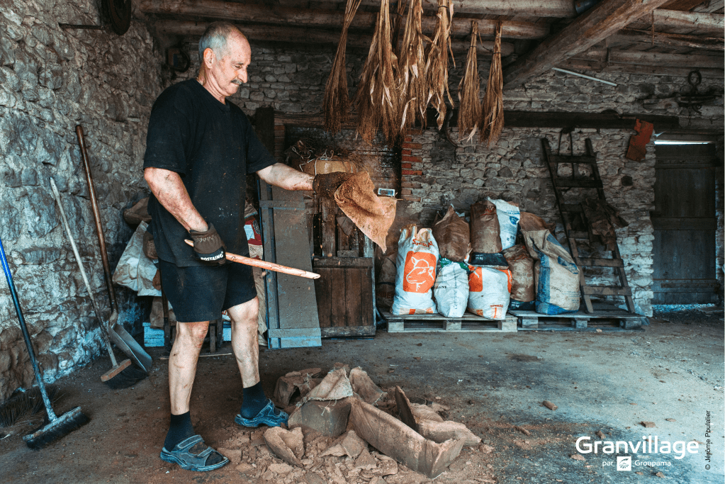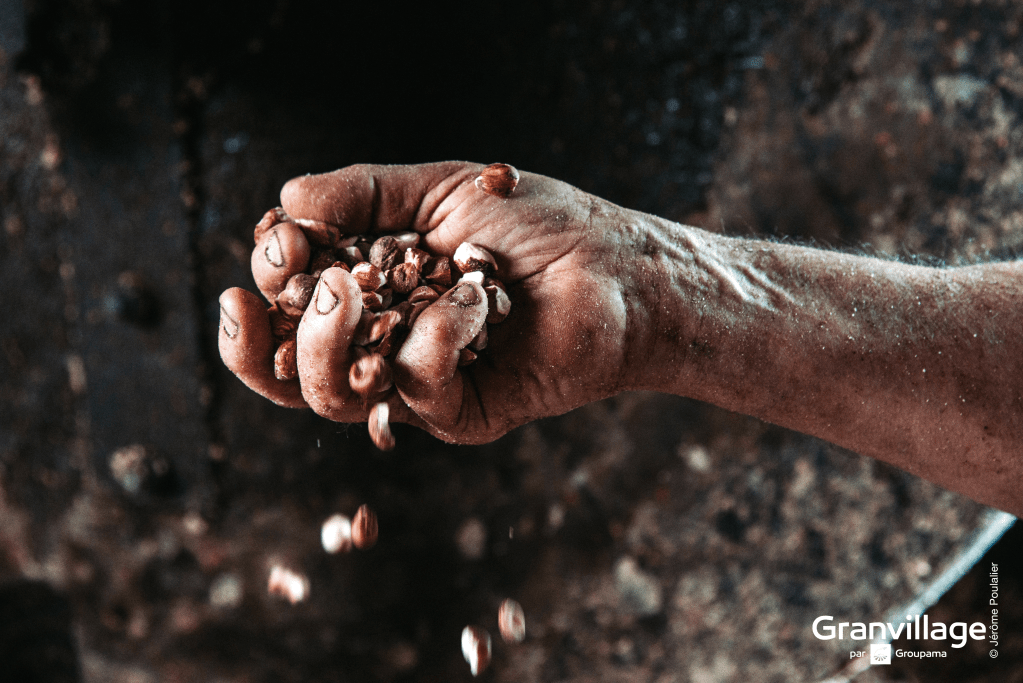 Claude produit environ 10 litres d’huile par pressée, avec une base de 23 kilos de cerneaux.