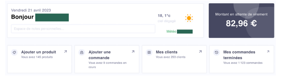 Le tableau de bord, c’est l’une des fonctionnalités proposées par Granvillage. Il permet aux producteurs en circuit court de suivre et d’analyser leur activité en direct, en ayant une vue d’ensemble sur les informations clé. En un coup d’œil, vous pouvez trouver les informations suivantes :